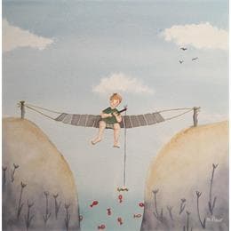 This unique and original contemporary artwork "Arthur, pêcheur de poissons rouges" on the subject of Life style has been created by the contemporary artist Marjoline Fleur.