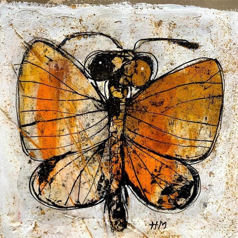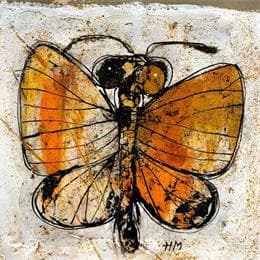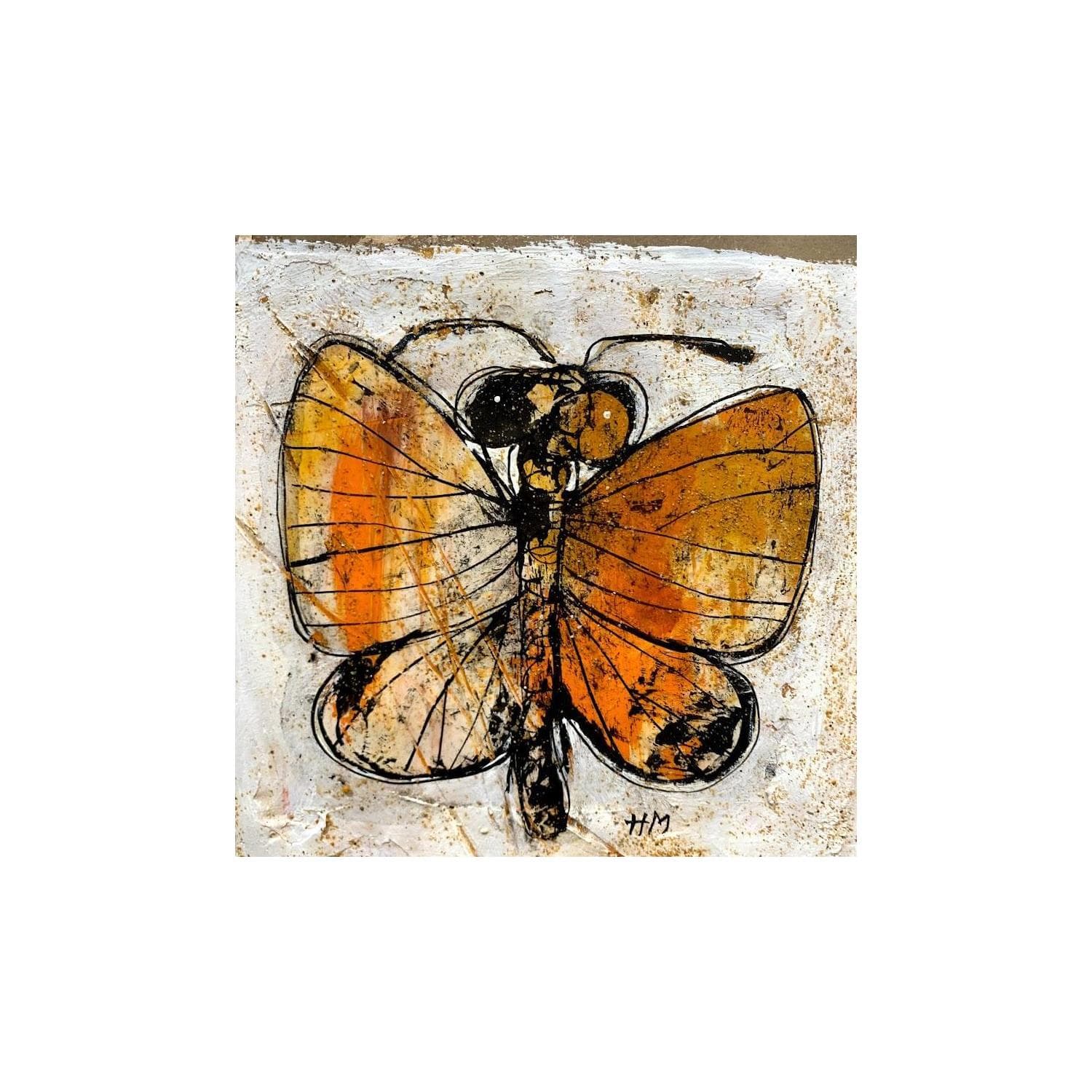 This unique and original contemporary artwork "Orange Butterfly" on the subject of Animals has been created by the contemporary artist Maury Hervé.