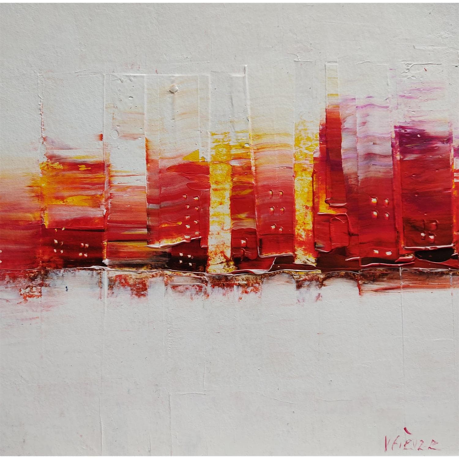 This unique and original contemporary artwork "Métropole au soleil couchant # 1" on the subject of Urban has been created by the contemporary artist Fièvre Véronique.