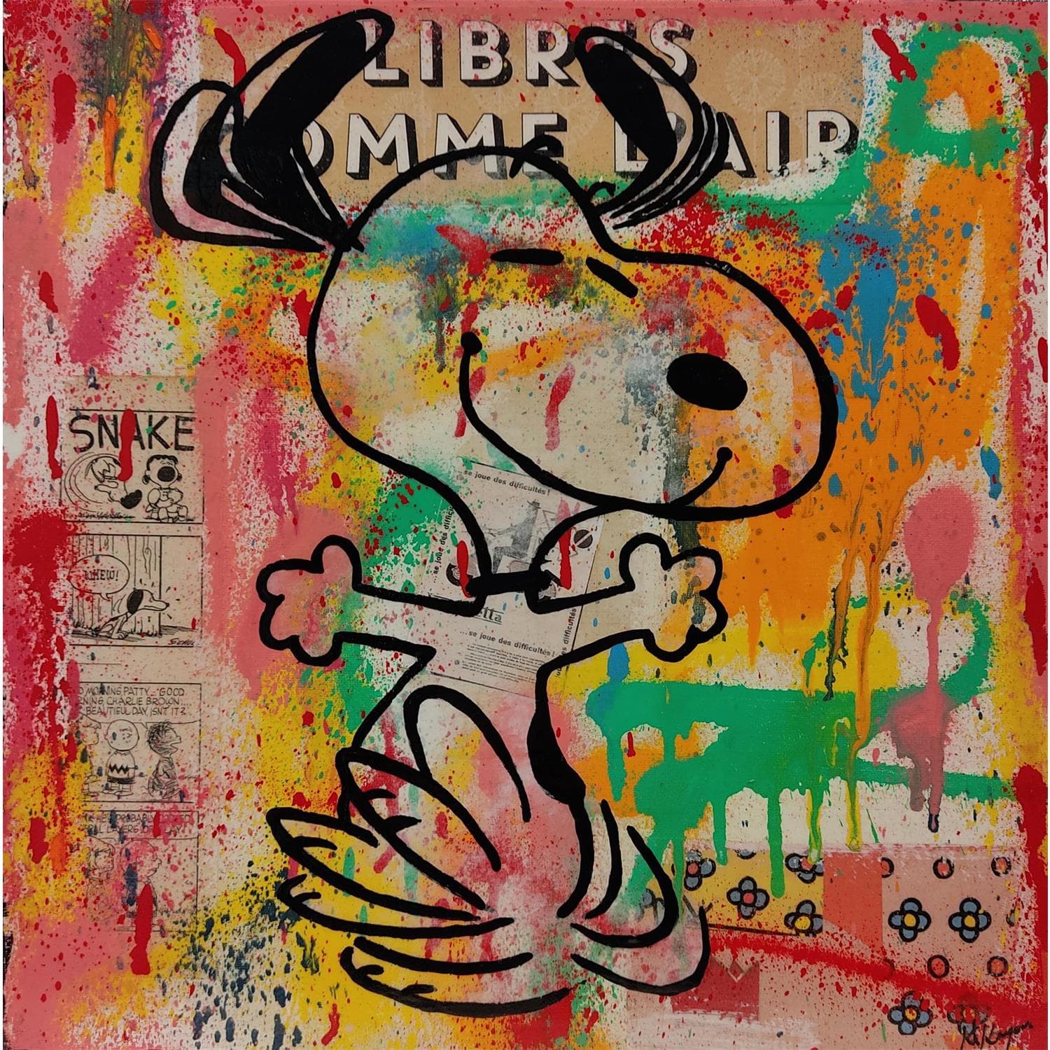 This unique and original contemporary artwork "Snoopy free" on the subject of Pop icons has been created by the contemporary artist Kikayou.