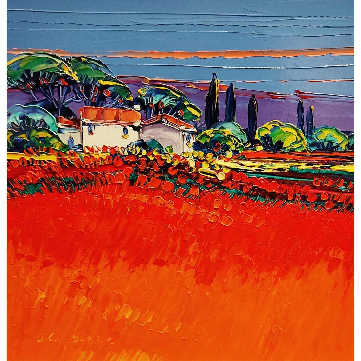 This unique and original contemporary artwork "Paysage des Alpilles" on the subject of Landscapes has been created by the contemporary artist Corbière Liisa.