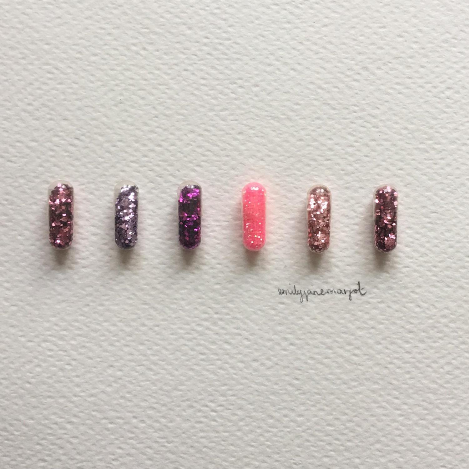 This unique and original contemporary artwork "Happy pills pink" on the subject of Minimalist has been created by the contemporary artist Marjot Emily Jane .