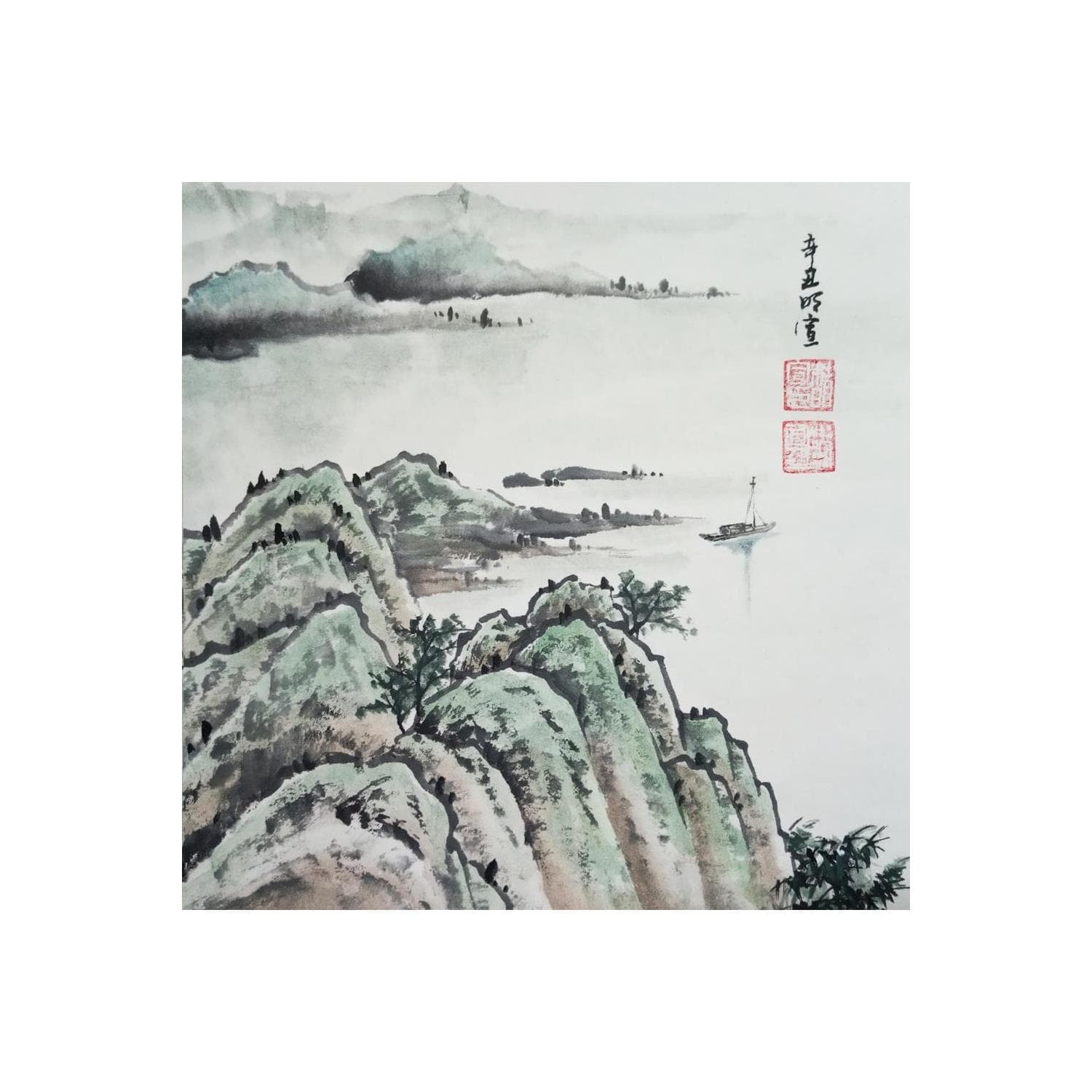 This unique and original contemporary artwork "Lake side" on the subject of Landscapes has been created by the contemporary artist Du Mingxuan.