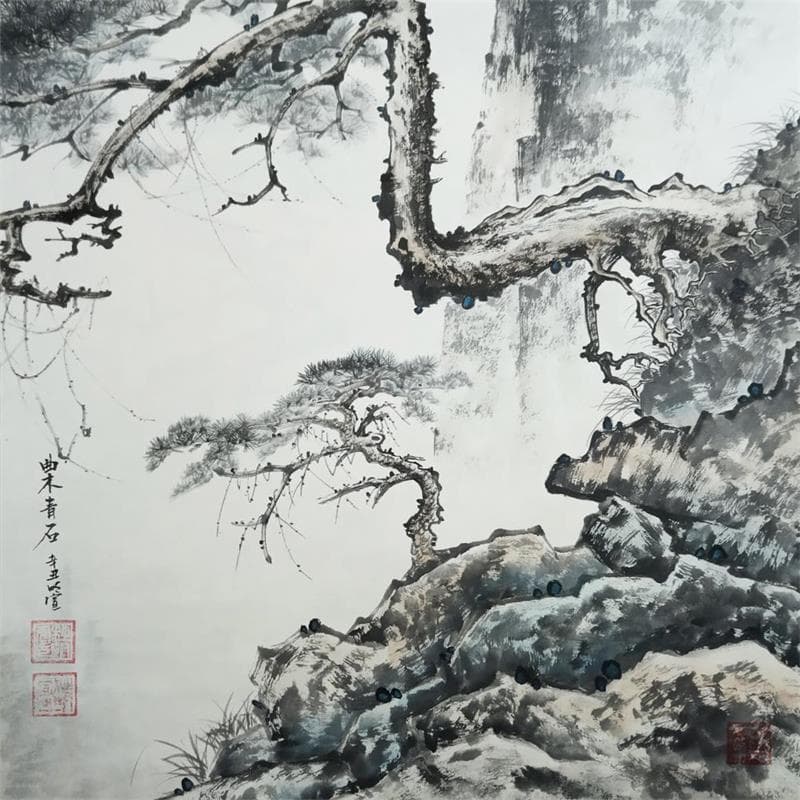 This unique and original contemporary artwork "Pines" on the subjects of Landscapes, Nature has been created by the contemporary artist Du Mingxuan.