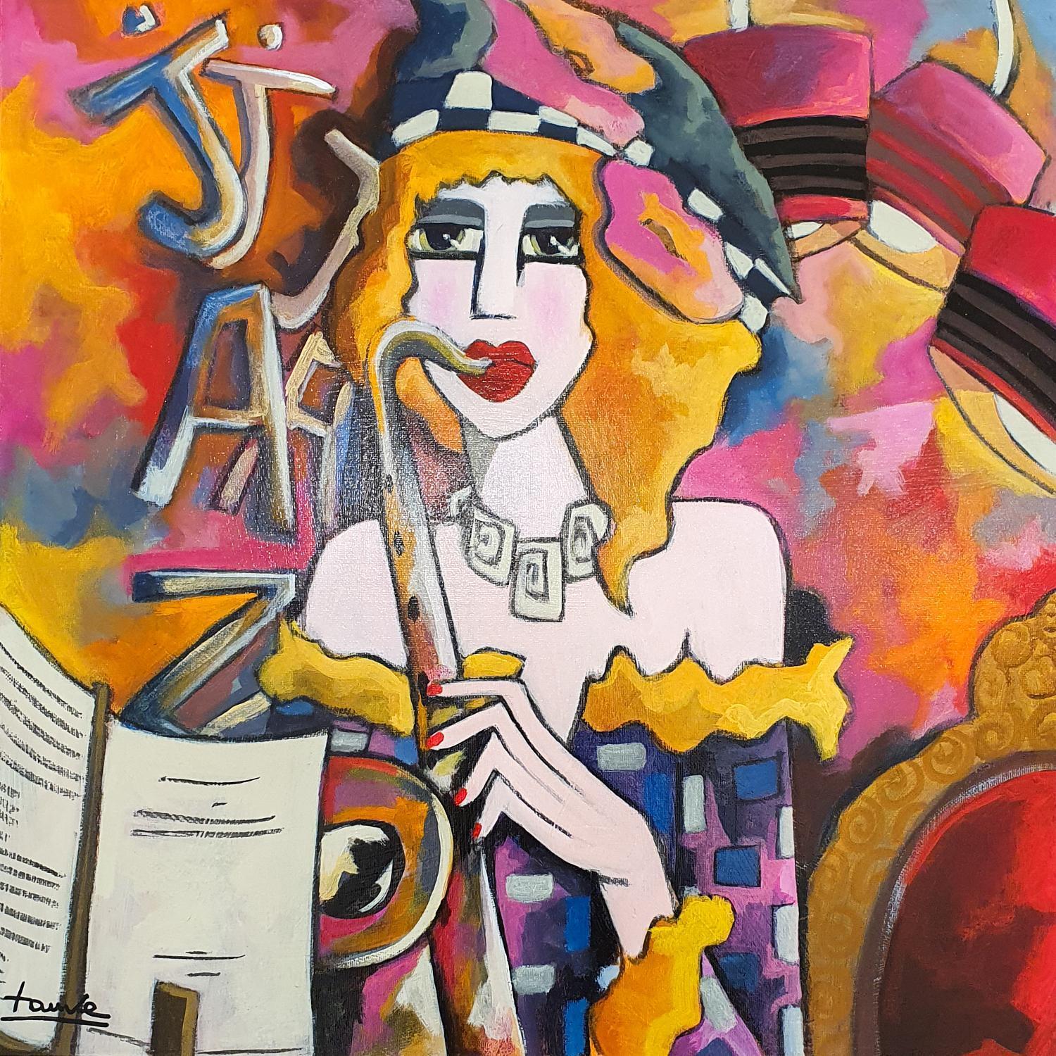 This unique and original contemporary artwork "Jazz au féminin" on the subject of Life style has been created by the contemporary artist Fauve.