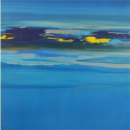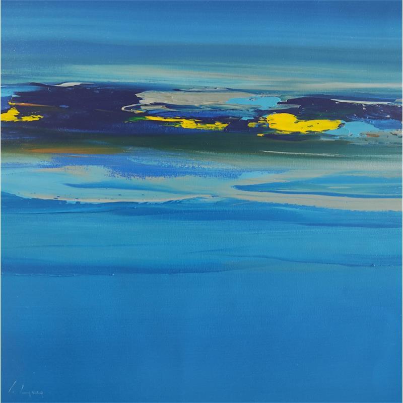 Viviane focused her painting on the different landscapes of our planet, notably in Canada and Polynesia as well as the USA, before placing her paintbrushes and canvases on the edge of the Atlantic. Today she has installed her studio in the heart of the Guerande peninsula, where she lives surrounded by marine horizons, beaches of fine sand, salt marshes and savage dunes. Viviane principally uses oil paints with very different tools, chosen depending on the effect she wishes to create. She loves to play with diluted colours and impasto and creates a marine dynamic in her works and the volume and the reliefs remind us of small, gushing waves.