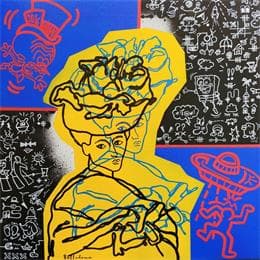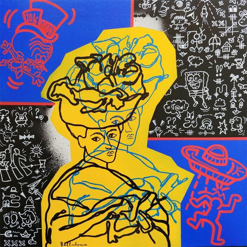 This unique and original contemporary artwork "Pot de couleurs" on the subject of Pop icons has been created by the contemporary artist Belladone.