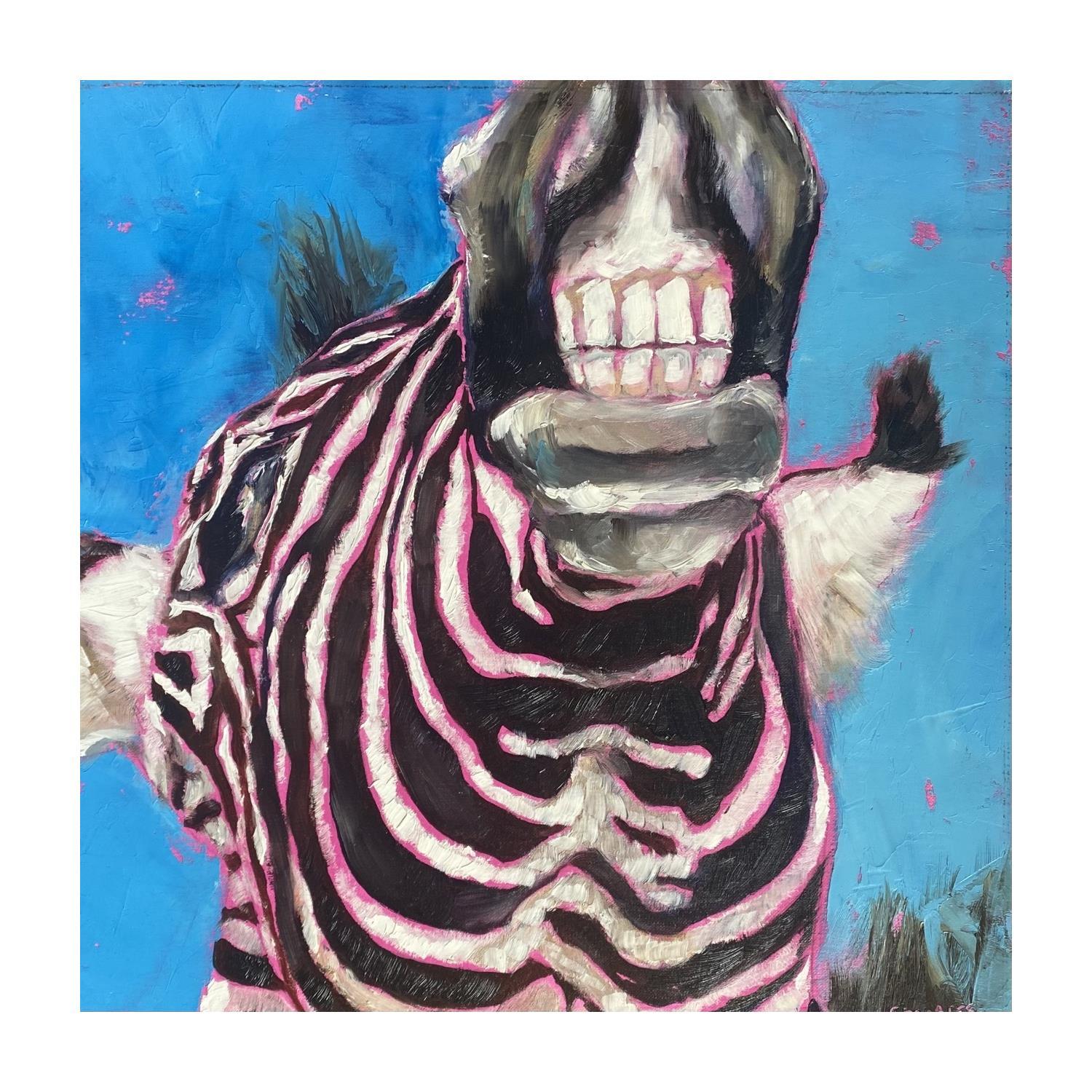 This unique and original contemporary artwork "ZEBRE SOURIANT" on the subject of Animals has been created by the contemporary artist Morales Géraldine.