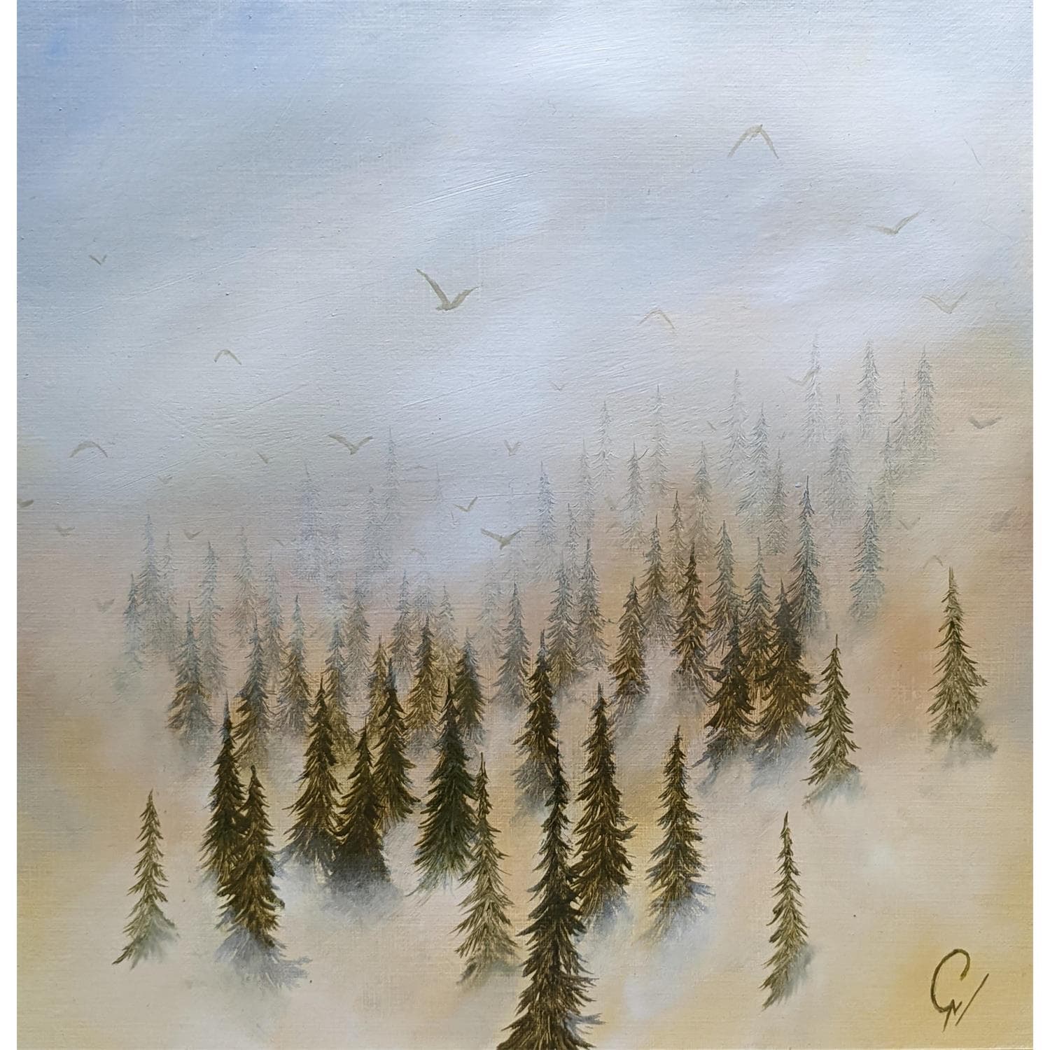 This unique and original contemporary artwork "L'envol du matin" on the subject of Landscapes has been created by the contemporary artist Pressac Clémence.