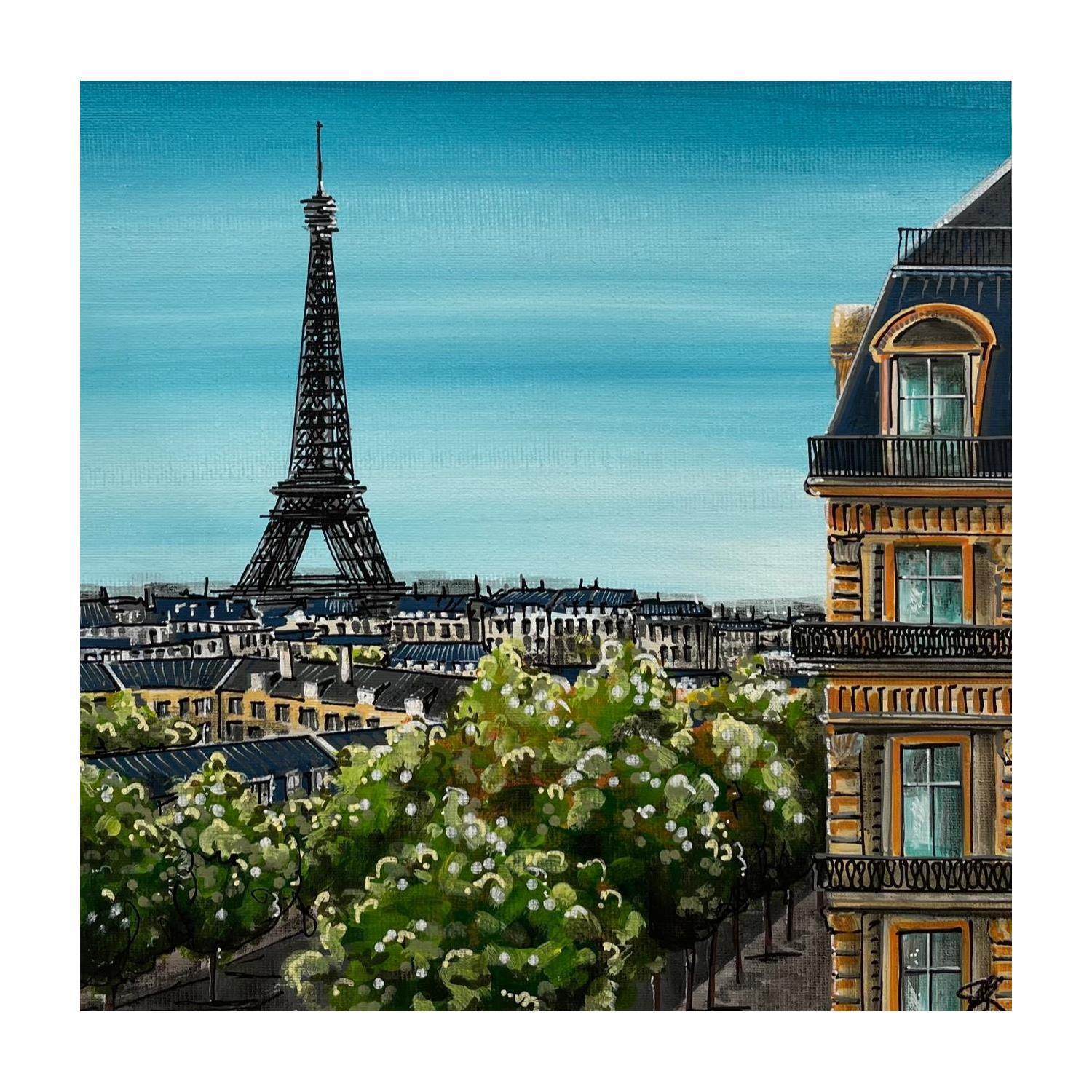 This unique and original contemporary artwork "Madame la tour Eiffel" on the subject of Landscapes has been created by the contemporary artist Touras Sophie-Kim .