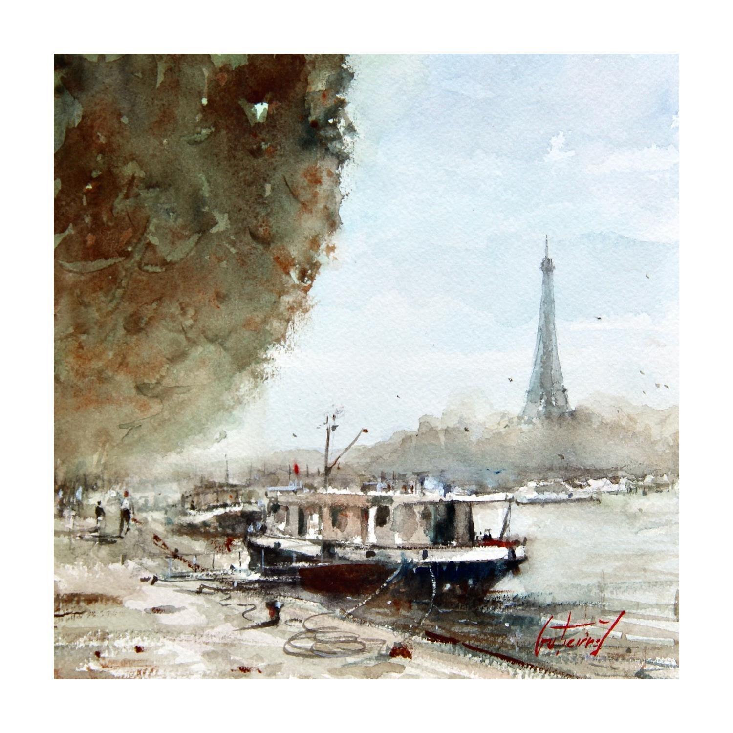 Quais de SeinePintura Quais de Seine por Gutierrez | Pintura Figurative Landscapes Watercolor
