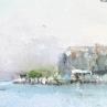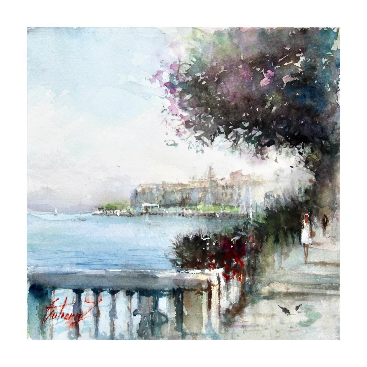 This unique and original contemporary artwork "Le lac de Côme" on the subjects of Landscapes, Urban has been created by the contemporary artist Gutierrez.