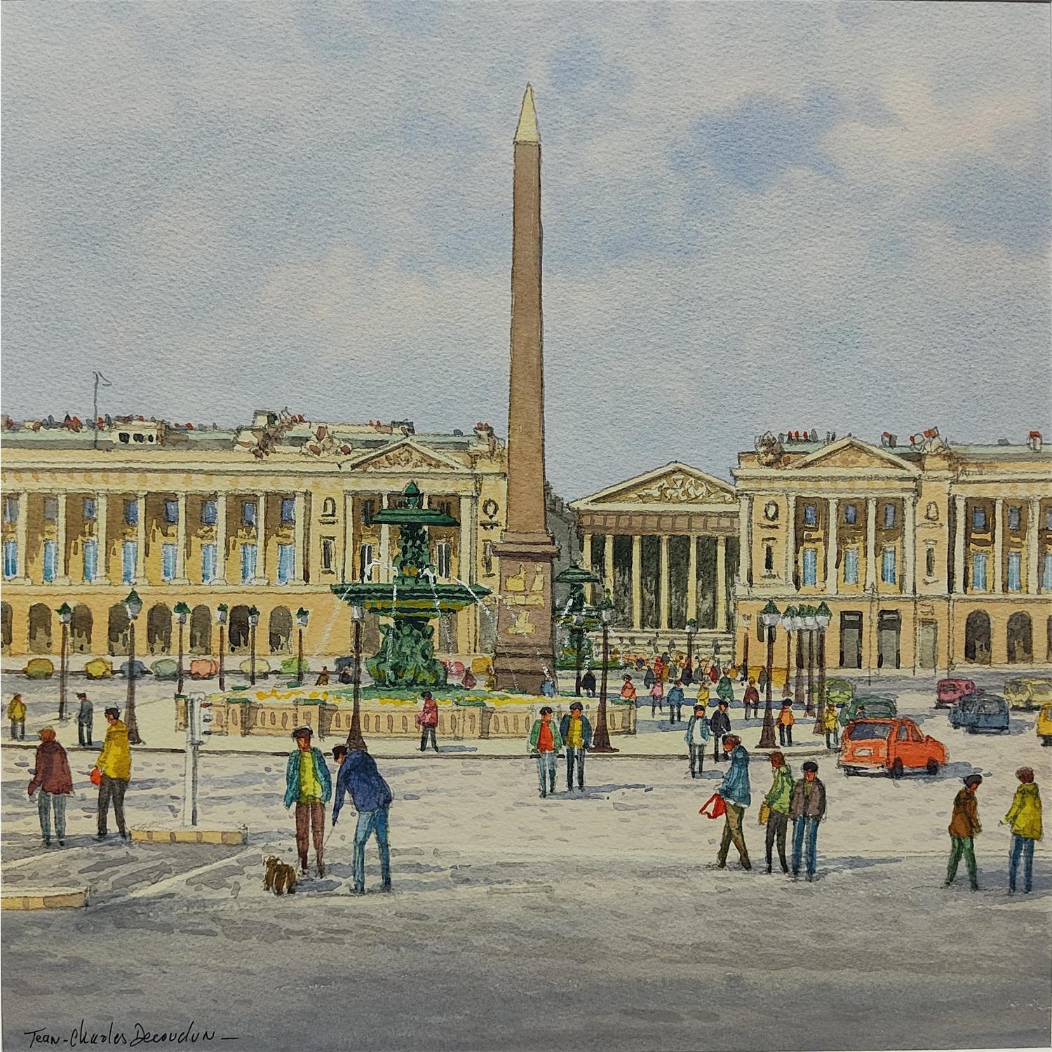 This unique and original contemporary artwork "Paris, place de la Concorde et la Madeleine" on the subjects of Landscapes, Life style, Urban has been created by the contemporary artist Decoudun Jean charles.