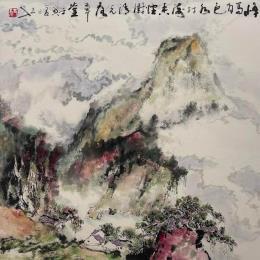 This unique and original contemporary artwork "Brilliant mountains" on the subject of Landscapes has been created by the contemporary artist Sanqian.