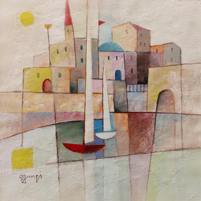 This unique and original contemporary artwork "A020 Soleil levant" on the subjects of Landscapes, Marine has been created by the contemporary artist Burgi Roger.