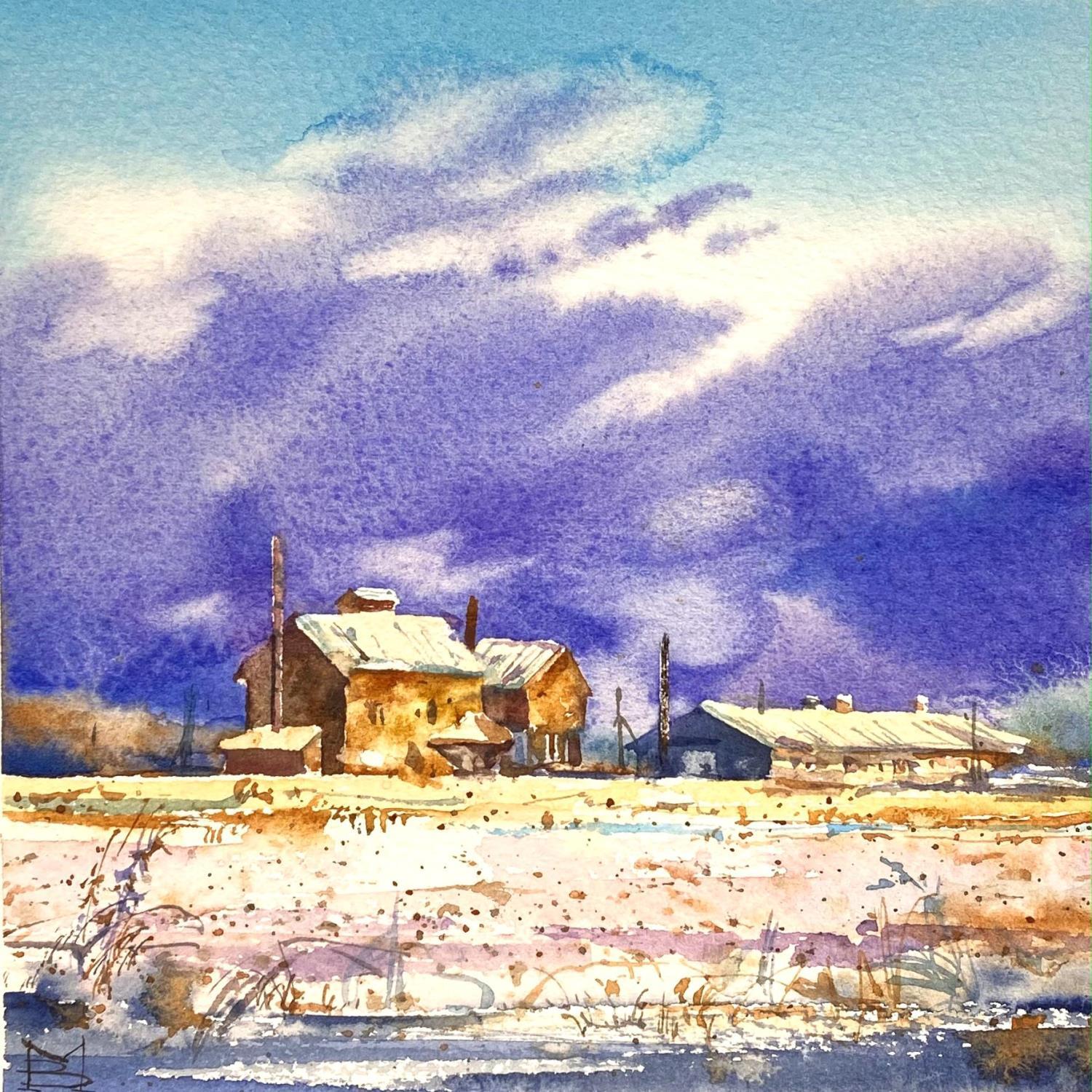 Field Pintura Field  por Volynskih Mariya  | Pintura Figurative Landscapes Nature Minimalist Watercolor
