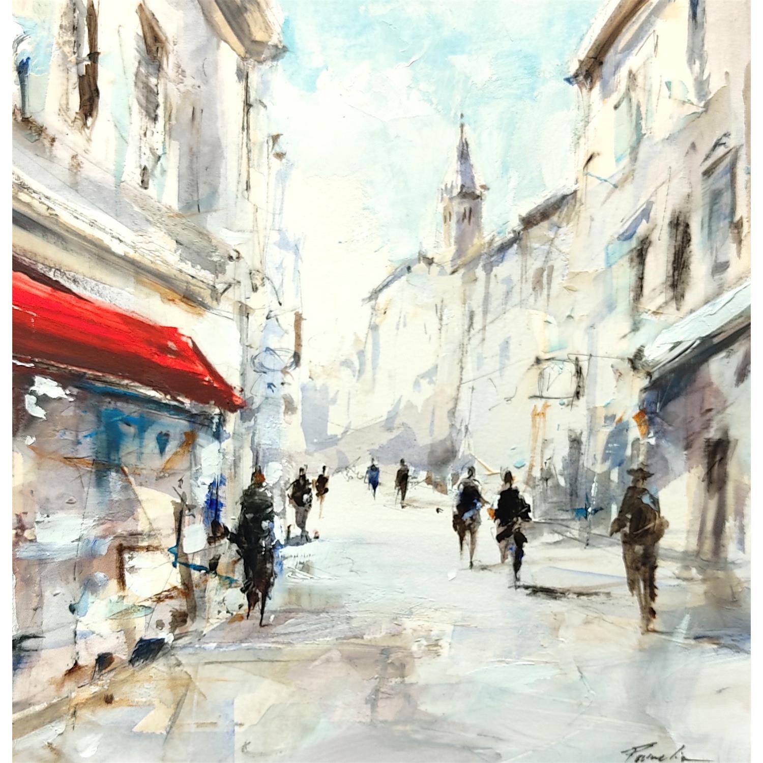 This unique and original contemporary artwork "Basilica Saint-Sernin Toulouse" on the subjects of Life style, Urban has been created by the contemporary artist Poumelin Richard.