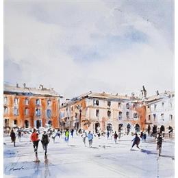 This unique and original contemporary artwork "Place du capitole Toulouse" on the subjects of Life style, Urban has been created by the contemporary artist Poumelin Richard.