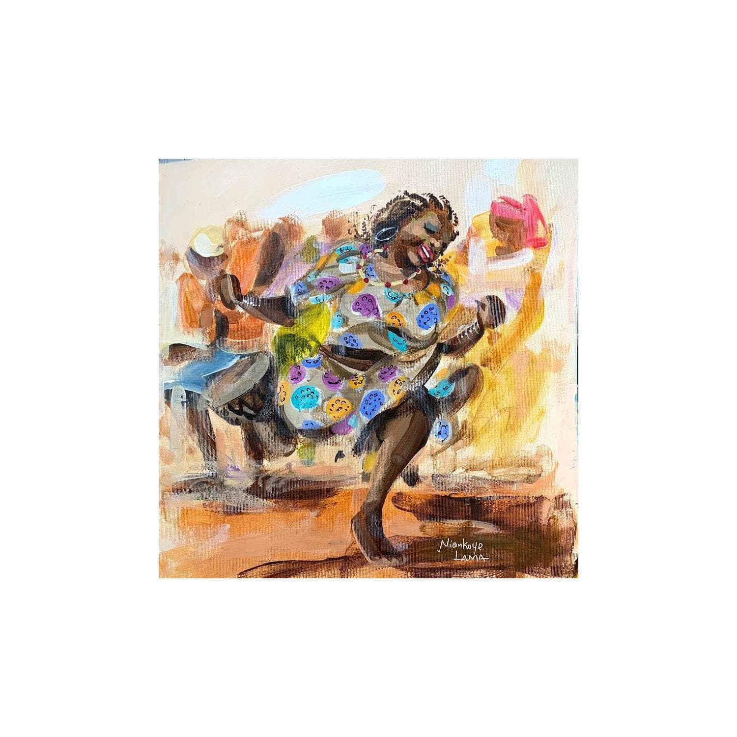 This unique and original contemporary artwork "LA DANSEUSE EN DJEMBE" on the subject of Life style has been created by the contemporary artist Lama Niankoye.