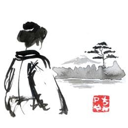 This unique and original contemporary artwork "geisha is watching" on the subject of Landscapes has been created by the contemporary artist Péchane.