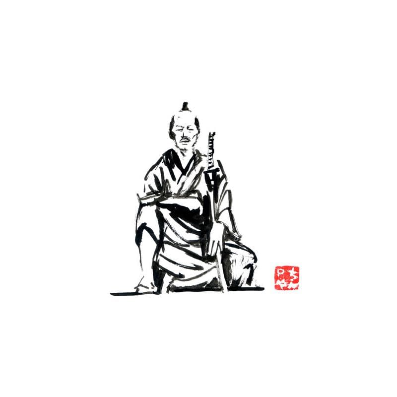 This unique and original contemporary artwork "waiting samurai" on the subject of Portrait has been created by the contemporary artist Péchane.