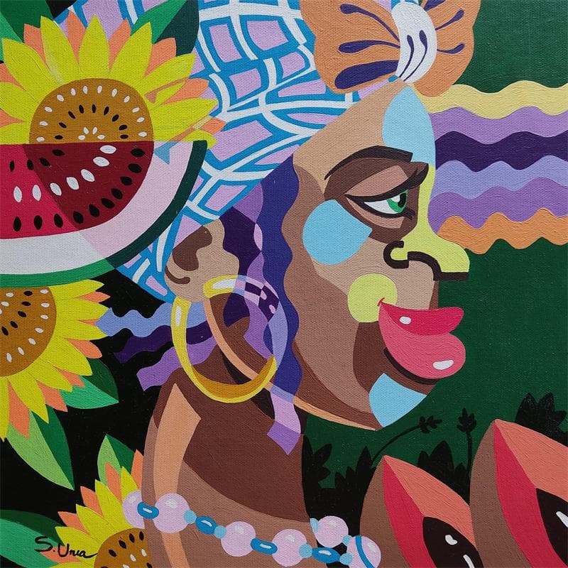 This unique and original contemporary artwork "PREGONERA" on the subject of Portrait has been created by the contemporary artist S.Uria.