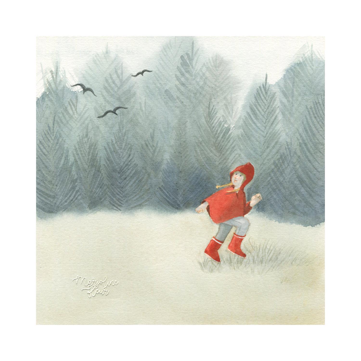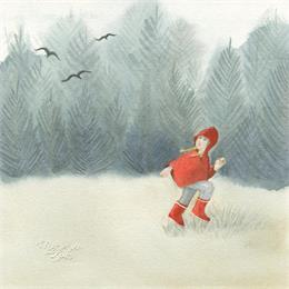 This unique and original contemporary artwork "Sapins et chaperon rouge" on the subjects of Landscapes, Life style has been created by the contemporary artist Marjoline Fleur.