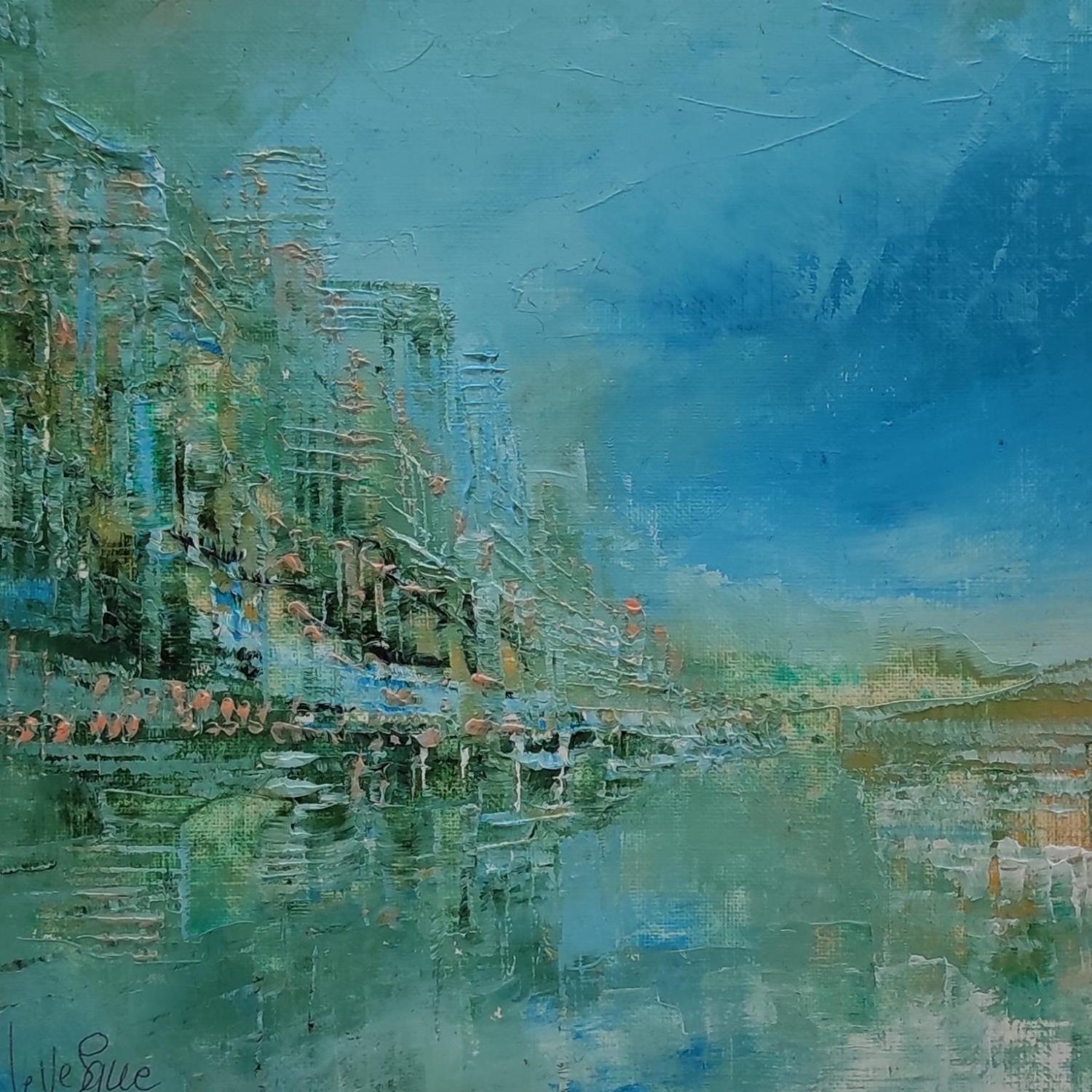 This unique and original contemporary artwork "Au bout de la jetée" on the subject of Urban has been created by the contemporary artist Levesque Emmanuelle.