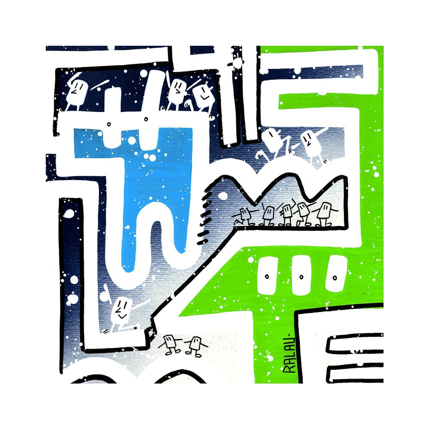 This unique and original contemporary artwork "Cohabitation" on the subjects of Landscapes, Life style has been created by the contemporary artist Ralau.