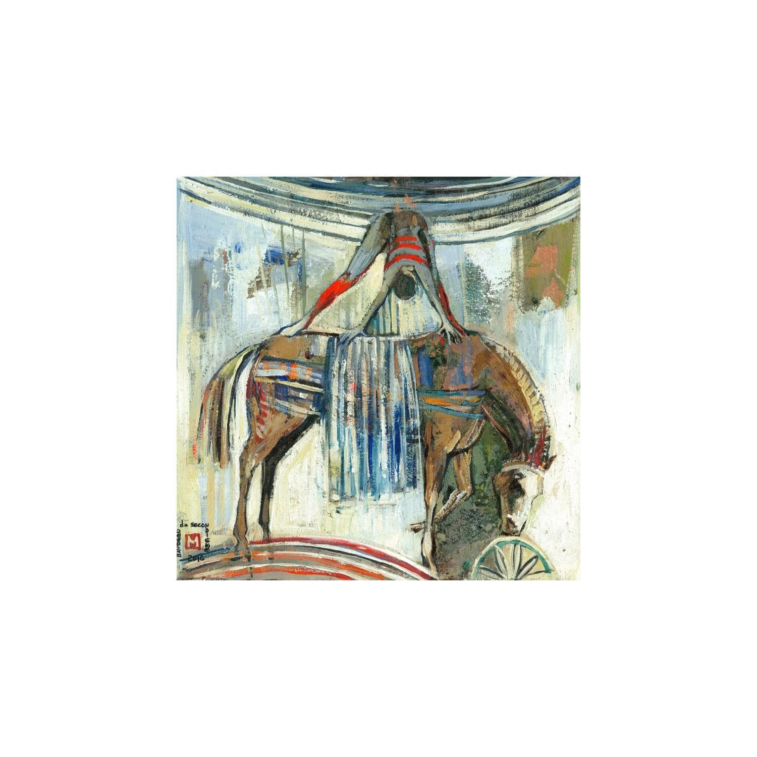 The contemporary artwork Des rouges en équilibre is a modern painting from the artist Baubeau de Secondigné. This is a contemporary painting, unique and originale, Figurative style.