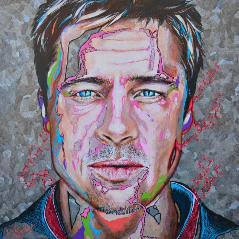 Pintura Brad Pitt por Medeya Lemdiya | Pintura Pop-art Pop icons Acrylic