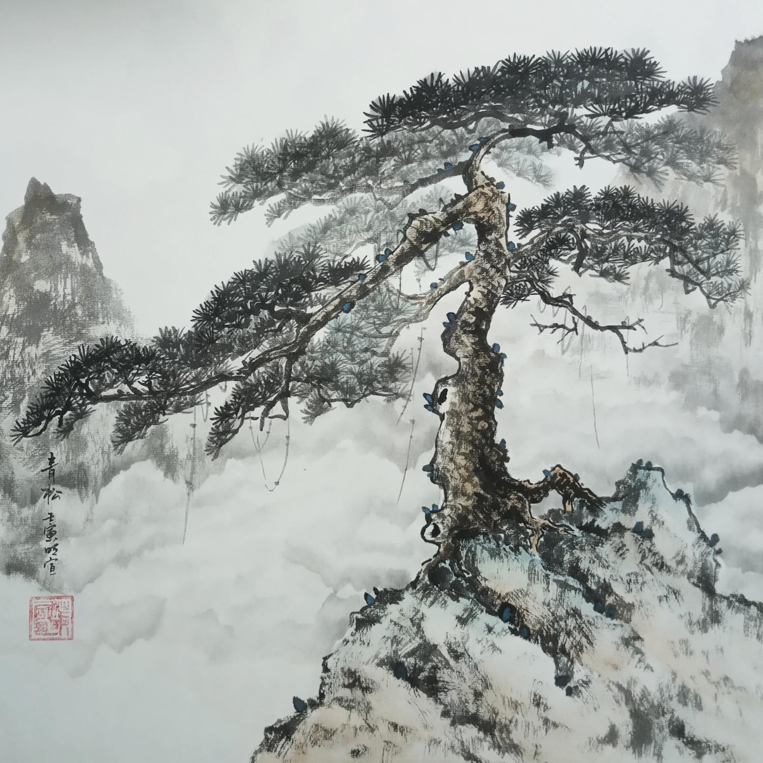 This unique and original contemporary artwork "Standing on cliff" on the subjects of Landscapes, Nature has been created by the contemporary artist Du Mingxuan.