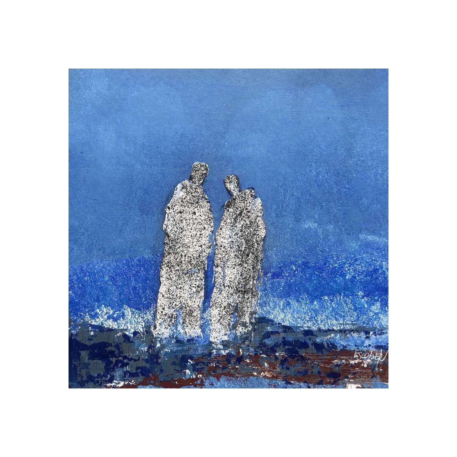 Vers l'horizon bleuPintura Vers l'horizon bleu por Escolier Odile | Pintura Raw art Pop icons Cardboard Acrylic Sand