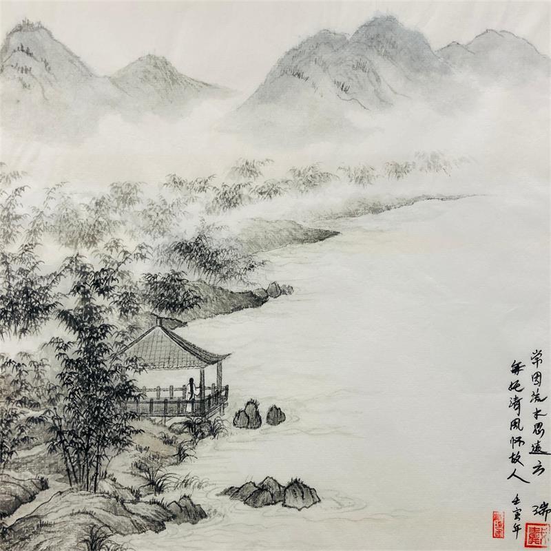 This unique and original contemporary artwork "I missing you far away / Tu me manques de loin" on the subjects of Landscapes, Life style has been created by the contemporary artist Amblard Rui.