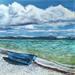 This unique and original contemporary artwork "BARQUE BLEUE " on the subject of Marine has been created by the contemporary artist Bougouin Laurent.