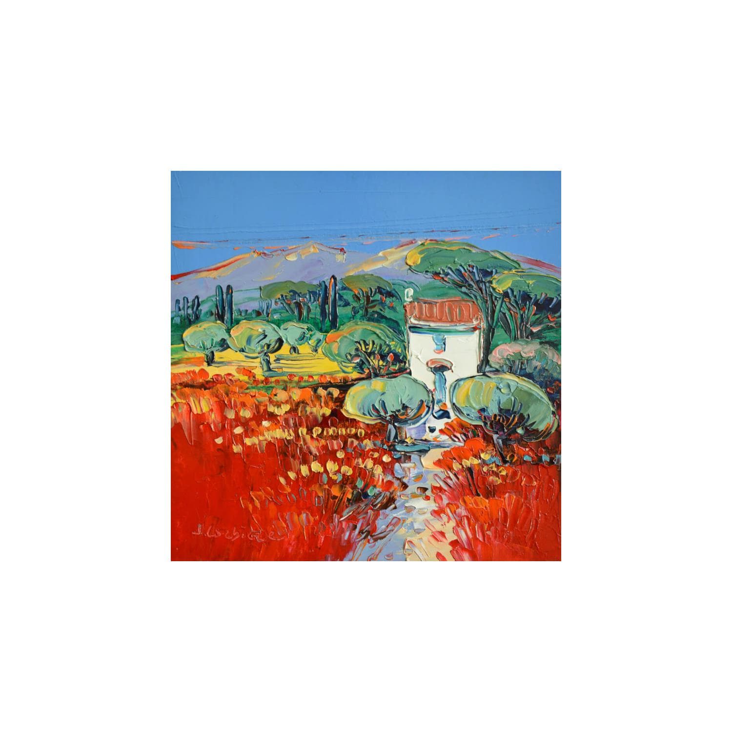 This unique and original contemporary artwork "Près d'Arles" on the subject of Landscapes has been created by the contemporary artist Corbière Liisa.