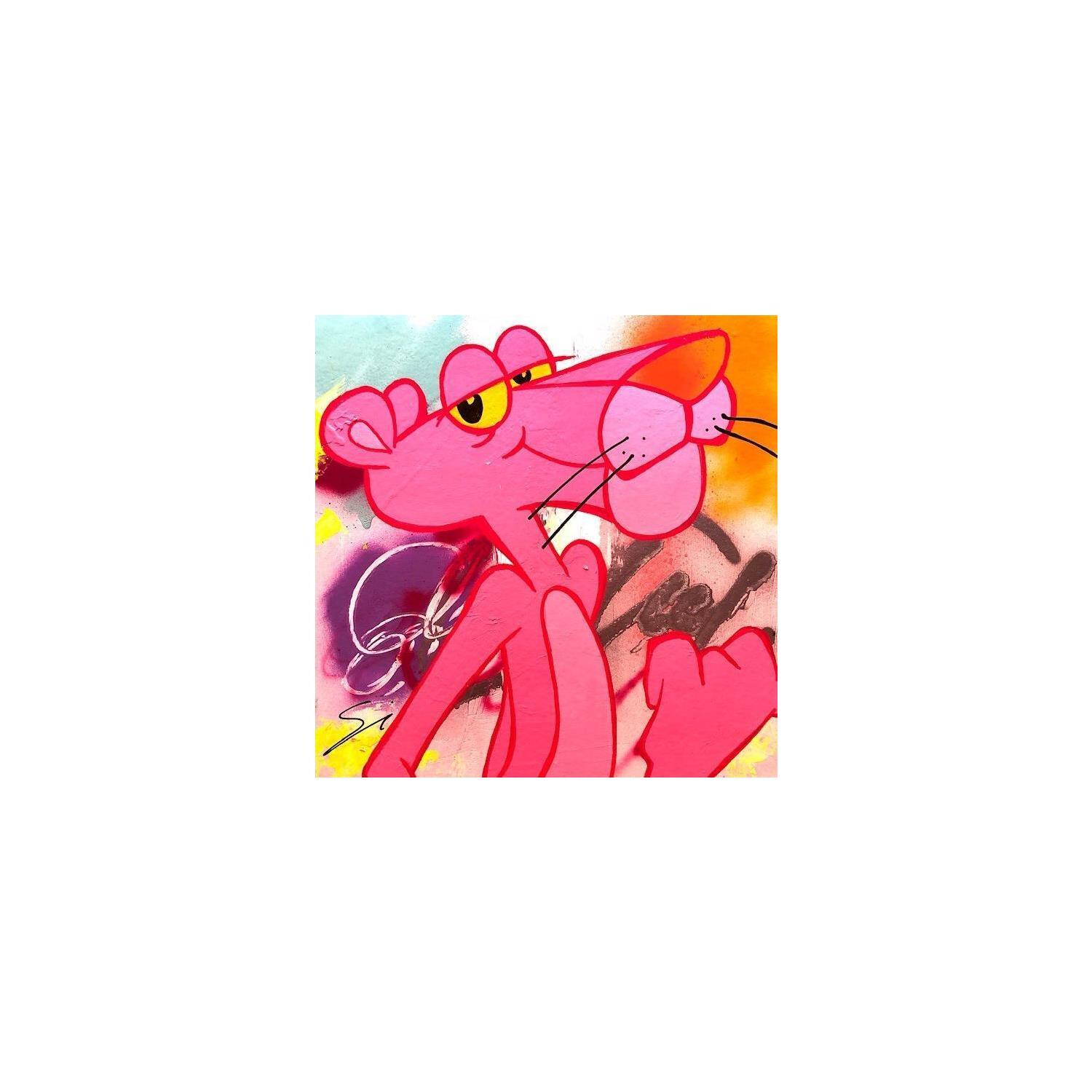 This unique and original contemporary artwork "FASHION PINK PANTHER" on the subject of Pop icons has been created by the contemporary artist Mestres Sergi.