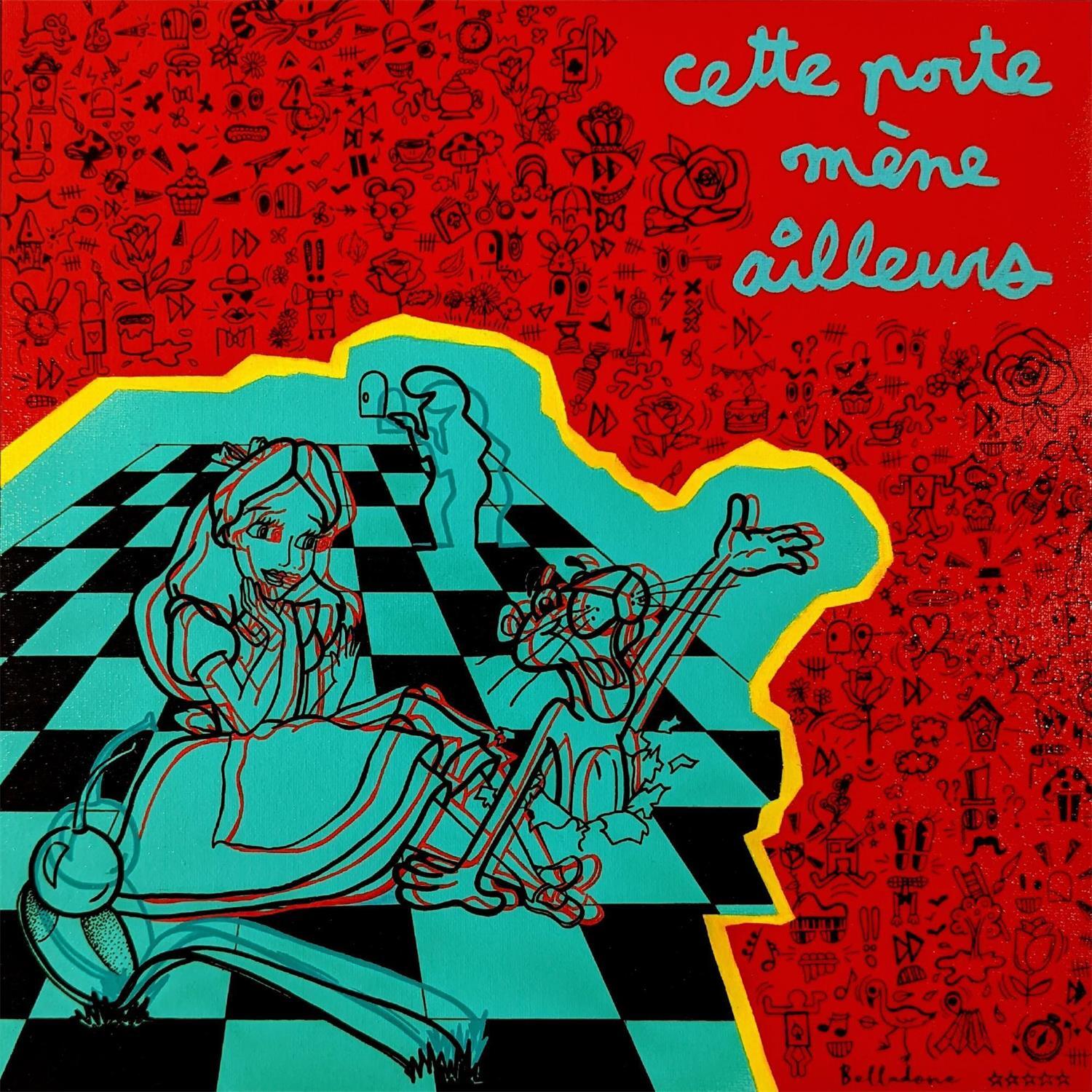 This unique and original contemporary artwork "Cette porte mène ailleurs" on the subject of Pop icons has been created by the contemporary artist Belladone.