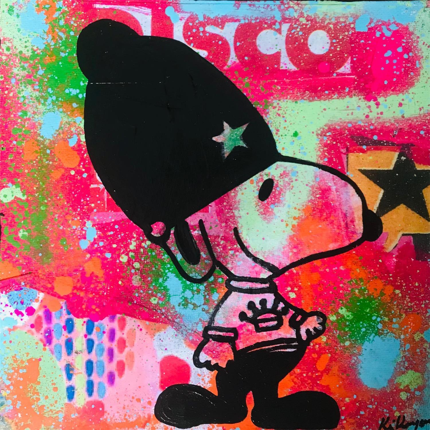 This unique and original contemporary artwork "Snoopy london " on the subject of Pop icons has been created by the contemporary artist Kikayou.