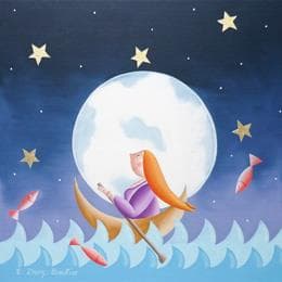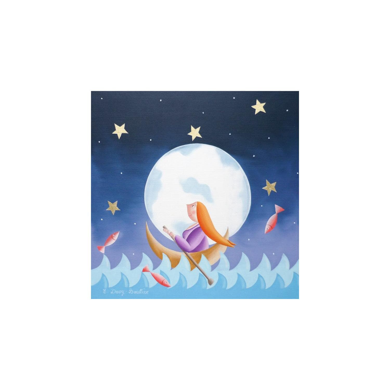 Pintura Ballade lunaire por Davy Bouttier Elisabeth | Pintura Naive art Life style Oil
