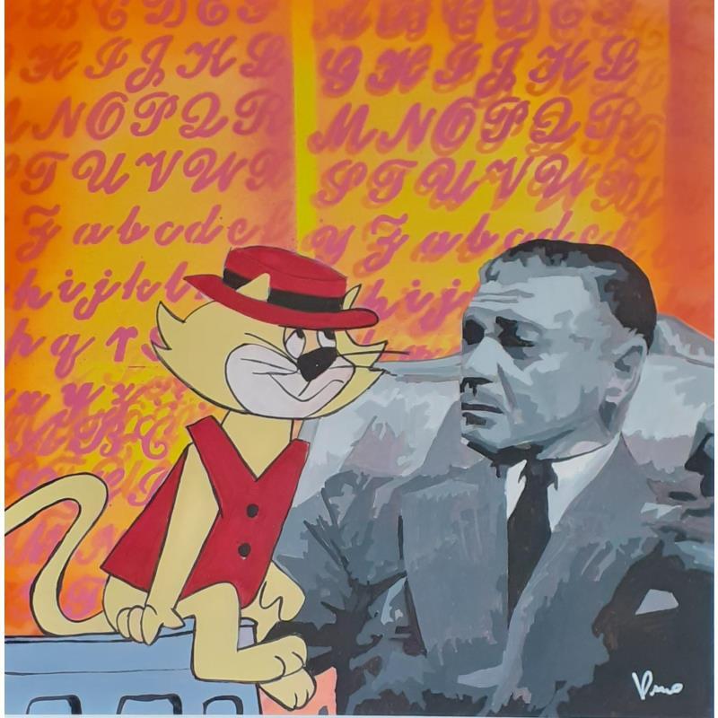 This unique and original contemporary artwork "Listen to me" on the subject of Pop icons has been created by the contemporary artist Przemo.