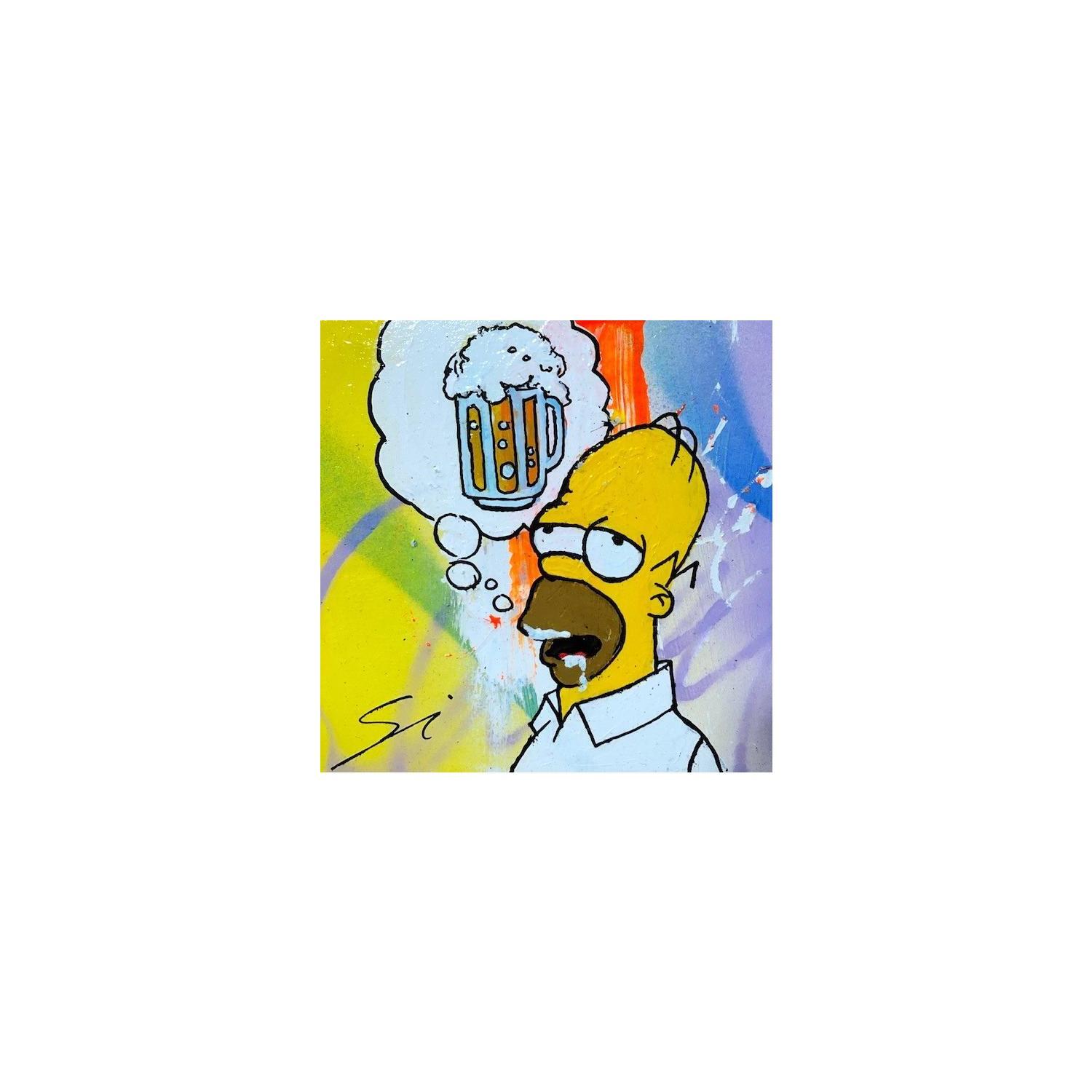 This unique and original contemporary artwork "dreaming a beer" on the subject of Pop icons has been created by the contemporary artist Mestres Sergi.