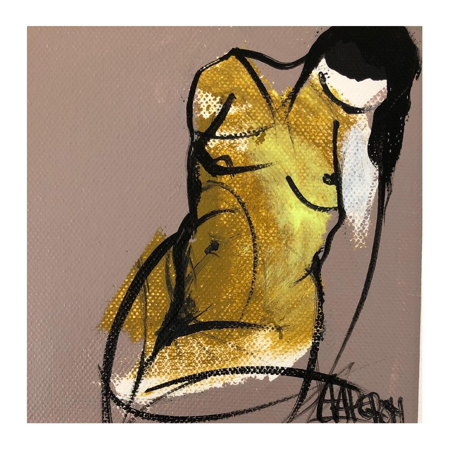 This unique and original contemporary artwork "VERT TAUPE" on the subject of Nude has been created by the contemporary artist Chaperon Martine.