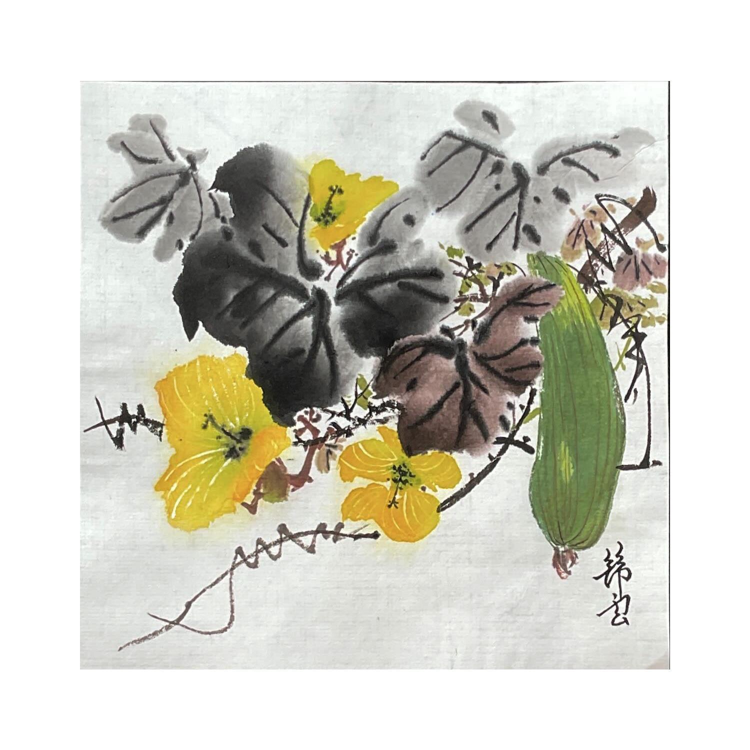 Pintura Concombre et fleurs jaunes por Tayun | Pintura Figurative Still-life Ink