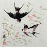 This unique and original contemporary artwork "Two Swallows" was created by contemporary artist Tayun. The artist used the Mixed media technique to create this small format painting on paper in the Figurative style.