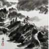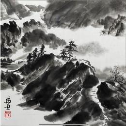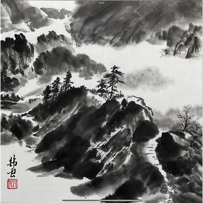 This unique and original contemporary artwork "Black and White Landscape" was created by contemporary artist Tayun. The artist used the Mixed media technique to create this small format painting on paper in the Figurative style.