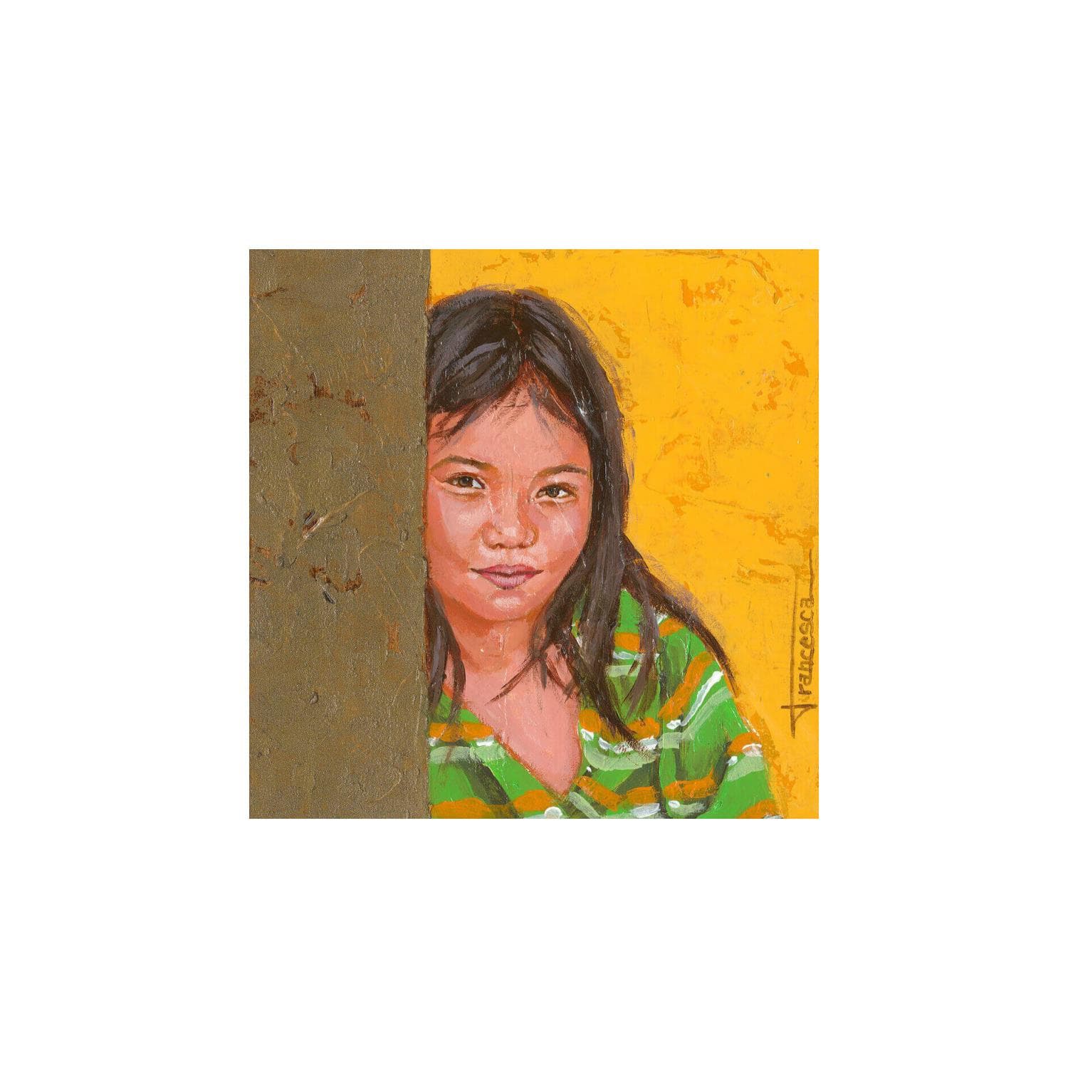The contemporary artwork Timidez is a modern painting from the artist Francesca Escobar. This is a contemporary painting, unique and originale, Figurative style.