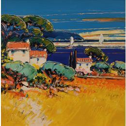 This unique and original contemporary artwork "La mediterrannée" on the subjects of Marine, Nature, Landscapes has been created by the contemporary artist Corbière Liisa.