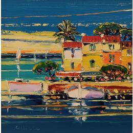 This unique and original contemporary artwork "Vacances sur la Cote d'Azur" on the subjects of Marine, Nature, Landscapes has been created by the contemporary artist Corbière Liisa.