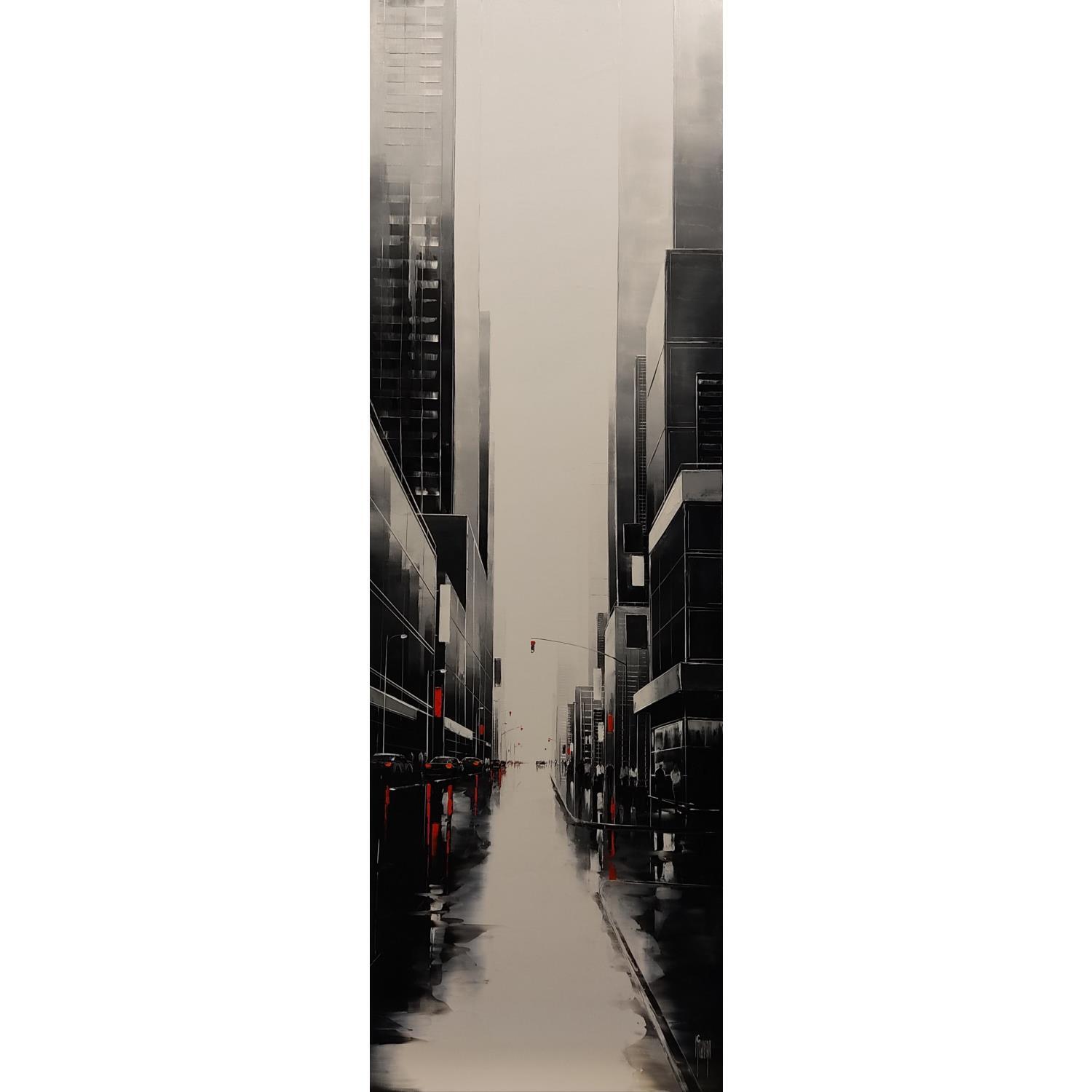 The artist used the oil technique to create this large format painting on canvas in the figurative style on the theme Urban Views.